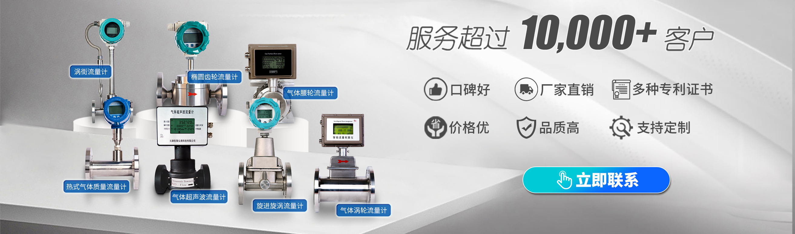 天津凱隆儀表科技有限公司,坐落于天津市北辰區果園新村紅郡大廈1號樓2724室。公司主要產品有:氣體超聲波流量計、旋進旋渦流量計,氣體渦輪流量計、液體渦輪流量計,熱式氣體質量流量計、液體超聲波流量計、氣體腰輪(羅茨) 流量計,電磁流量計,渦街流量計,橢圓齒輪流量計,雙轉子流量計,通用電子流量計等。  產品自投入市場以來廣泛用于國防、石油、化工、冶金、電力、制藥、食品、環保等行業。公司本著以質量求生存,以信譽促發展的經營理念,得到了客戶的廣泛好評。天津凱隆儀表科技有限公司全體員工竭誠為您服務。