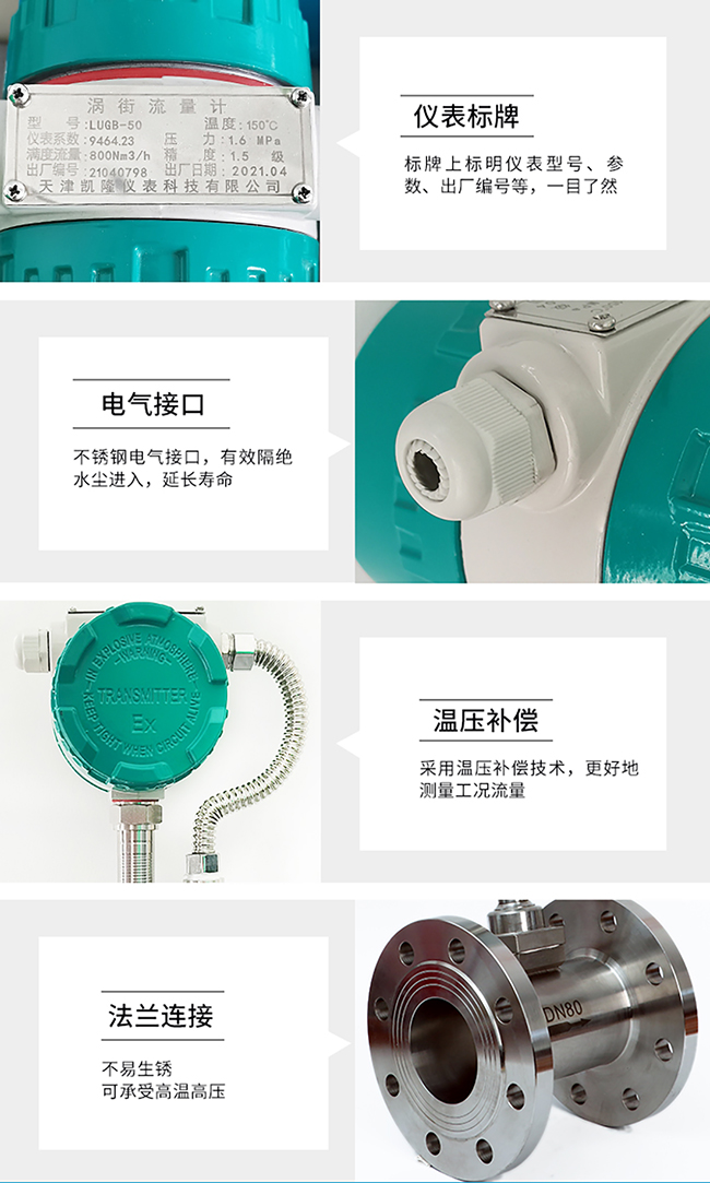 3、壓縮空氣一般管道口徑比較大,渦街口徑范圍寬,適合高流速氣體測量,有螺紋、對夾、法蘭管段式、插入式多種安裝方式可選;