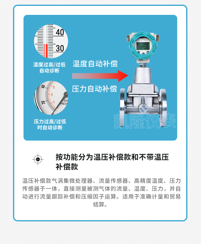 2019-08-28旋渦空氣流量計無機械可動部件,不易腐蝕,穩(wěn)定可靠,壽命長,長期運行無須特殊維護;表頭可360度旋轉(zhuǎn),安裝使用簡單方便;讀數(shù)直觀方便,可直接顯示工作狀態(tài)下的體積流量、標準狀態(tài)下的體積流量、總量,以及介質(zhì)壓力、溫度等參數(shù);轉(zhuǎn)換器可輸出頻率脈沖、4~20mA模擬信號,并具有RS485接口,可直接與微機聯(lián)網(wǎng),傳輸距離可達1.2km;與IC卡控制系統(tǒng)配合使用可實現(xiàn)預(yù)付費和流量控制功能。
