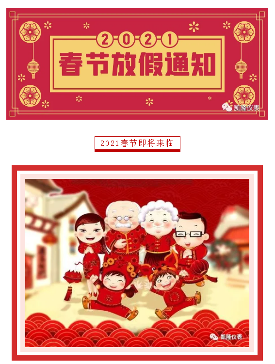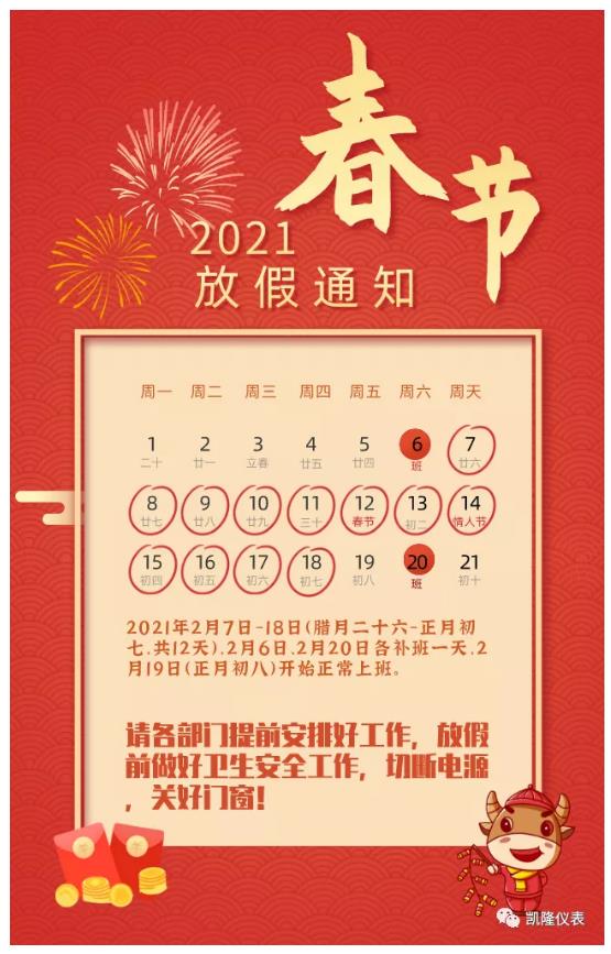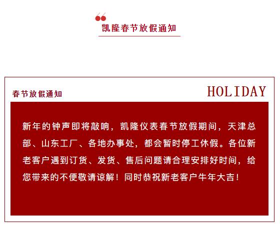 凱隆儀表春節放假通知