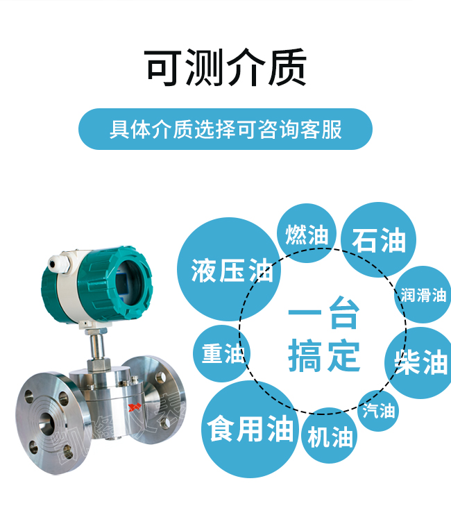 可測量介質(zhì):燃油、食用油、汽油、柴油、機(jī)油、潤滑油、液壓油、石油、重油、聚乙烯醇等液體,特別適用于高粘度液體測量。